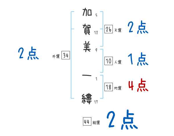加賀美一縷さんの画数の鑑定結果