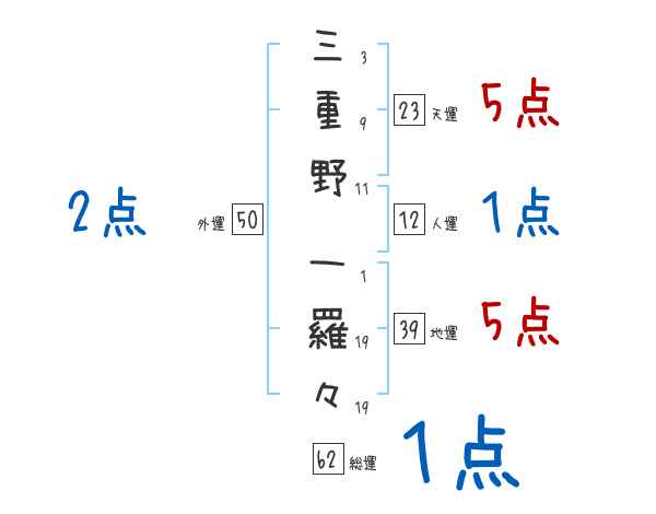 三重野一羅々さんの画数の鑑定結果