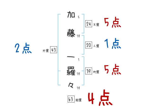 家系が持つ宿命的な運勢を表します。祖先から受け継いだ苗字ですので自分の力が及びません。家柄を象徴します。