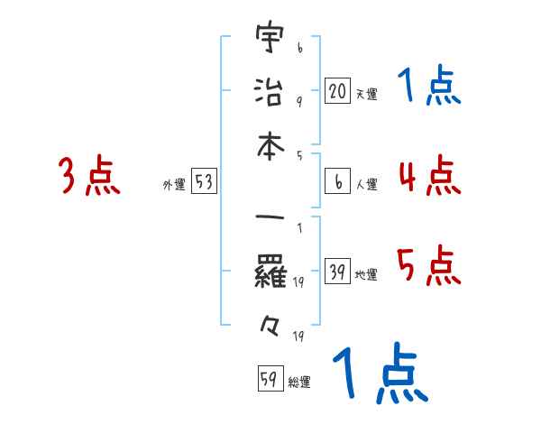 宇治本一羅々さんの画数の鑑定結果