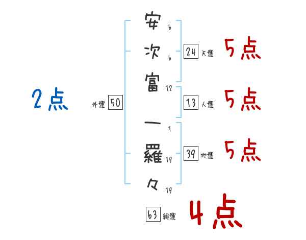 安次富一羅々さんの画数の鑑定結果