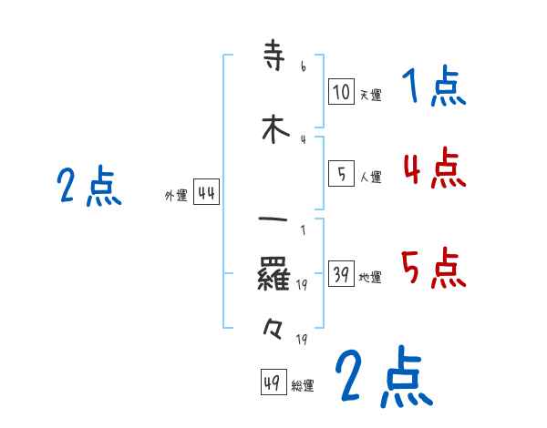 寺木一羅々さんの外運は44画の2つ星