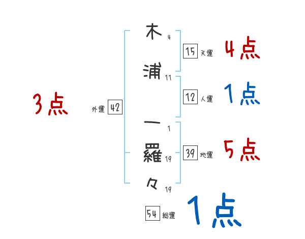 木浦一羅々さんの画数の鑑定結果