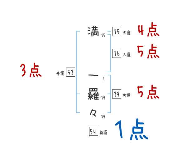 満一羅々さんの外運は53画の3つ星