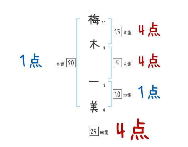 天運![]() | 梅木一美さんの天運は15画の4つ星!人徳があり出世する。順調に物事を進め円満な人生。 家系が持つ宿命的な運勢を表します。祖先から受け継いだ苗字ですので自分の力が及びません。家柄を象徴します。 |