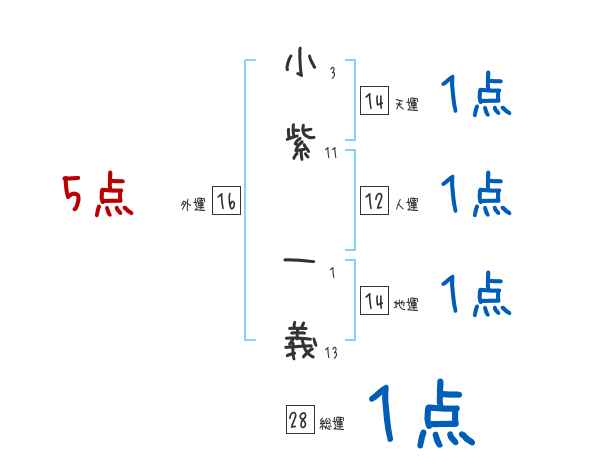 外運![]() | 小紫一義さんの外運は16画の5つ星!人望が厚く大きく発展する。逆転成功が見える。 生活面を象徴する運勢です。外部から受ける影響力を表し、結婚運、家庭運や職場、環境への順応性を表します。 |