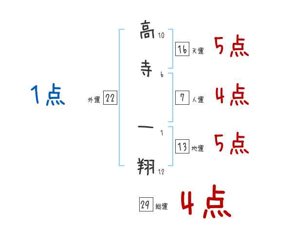 高寺一翔さんの画数の鑑定結果