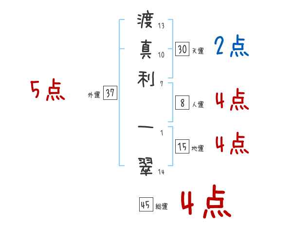外運![]() | 渡真利一翠さんの外運は37画の5つ星!努力家で順応性に優れる。現実的な考え方ができ忠実に物事をこなす。 生活面を象徴する運勢です。外部から受ける影響力を表し、結婚運、家庭運や職場、環境への順応性を表します。 |