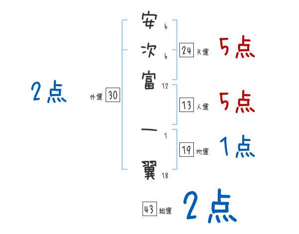 安次富一翼さんの画数の鑑定結果