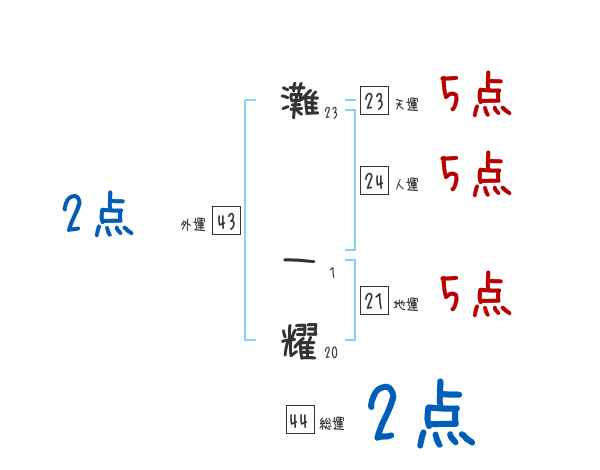 天運![]() | 灘一耀さんの天運は23画の5つ星!想像力に優れ活力がある。一代で成功し名誉を手に入れる。 家系が持つ宿命的な運勢を表します。祖先から受け継いだ苗字ですので自分の力が及びません。家柄を象徴します。 |