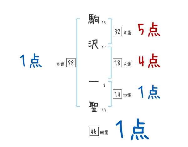 駒沢一聖さんの画数の鑑定結果