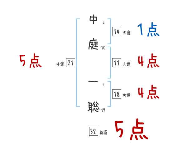 中庭一聡さんの画数の鑑定結果