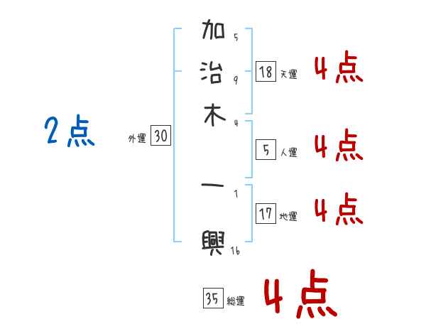 加治木一興さんの画数の鑑定結果