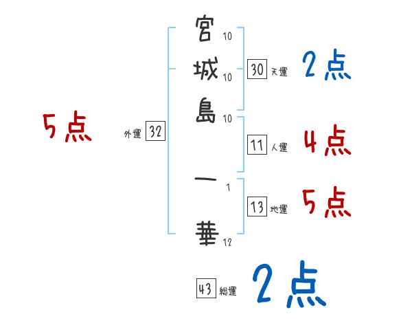 宮城島一華さんの画数の鑑定結果