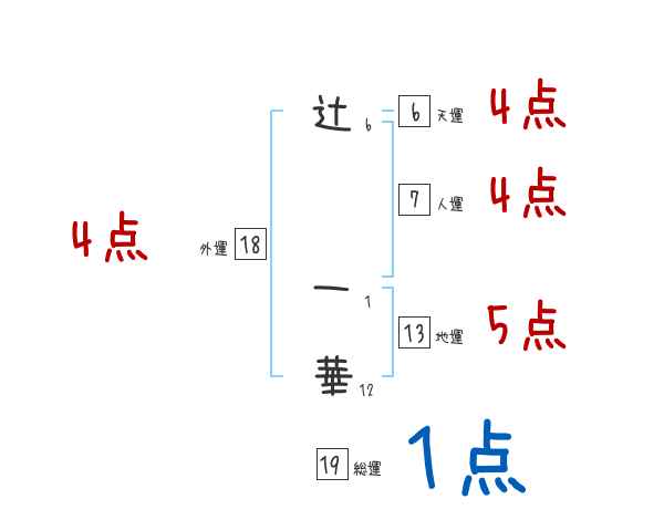 天運![]() | 辻一華さんの天運は6画の4つ星!慎重な努力家で信頼を得る。誠実な精神で向上心に優れる。 家系が持つ宿命的な運勢を表します。祖先から受け継いだ苗字ですので自分の力が及びません。家柄を象徴します。 |