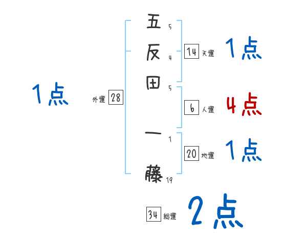 五反田一藤さんの画数の鑑定結果