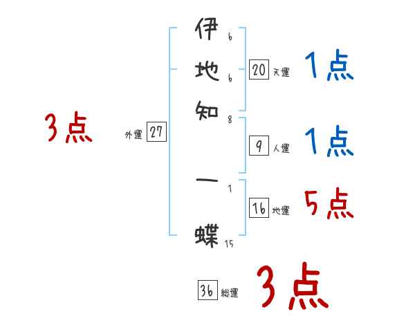 総運![]() | 伊地知一蝶さんの総運は36画の3つ星!先見性が豊かです。多少神経質で苦労することも。 あなたの人生を表す1番重要な運勢です。生涯を通じて影響する総合運となり、主に50歳以降の晩年期に影響を及ぼします。 |