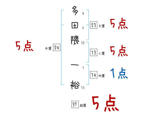多田隈一裕さんの画数の鑑定結果