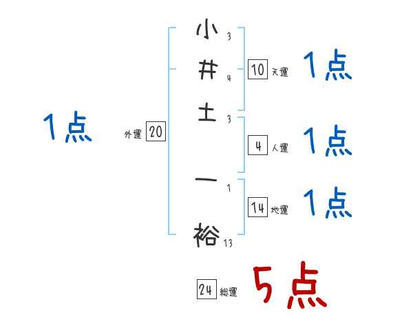 総運![]() | 小井土一裕さんの総運は24画の5つ星!家庭運が良く順調な人生。金運にも恵まれる。 あなたの人生を表す1番重要な運勢です。生涯を通じて影響する総合運となり、主に50歳以降の晩年期に影響を及ぼします。 |
