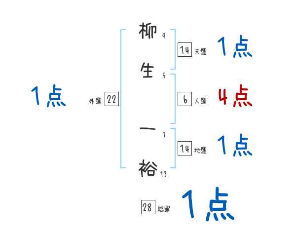 柳生一裕さんの画数の鑑定結果