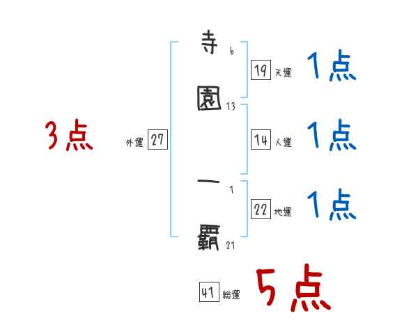 地運![]() | 寺園一覇さんの地運は22画の1つ星!努力することが苦手ないっぽう手先が器用。芸術性にも優れる。 個性を表す基礎的な運勢です。性格形成や対人関係、行動力など家庭環境に影響されます。主に誕生してから20歳くらいまでの若年期の運勢を表します。 |