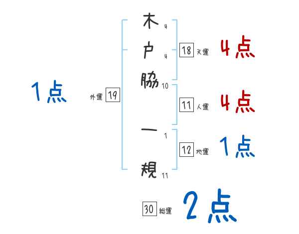 外運![]() | 木戸脇一規さんの外運は19画の1つ星!優れた才能を持ちますが、協調性が足りないことも。周りの人と協力する事を意識しましょう。 生活面を象徴する運勢です。外部から受ける影響力を表し、結婚運、家庭運や職場、環境への順応性を表します。 |