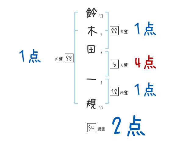 外運![]() | 鈴木田一規さんの外運は28画の1つ星!家庭環境に注意。スポーツで活躍できる能力があるかも。 生活面を象徴する運勢です。外部から受ける影響力を表し、結婚運、家庭運や職場、環境への順応性を表します。 |