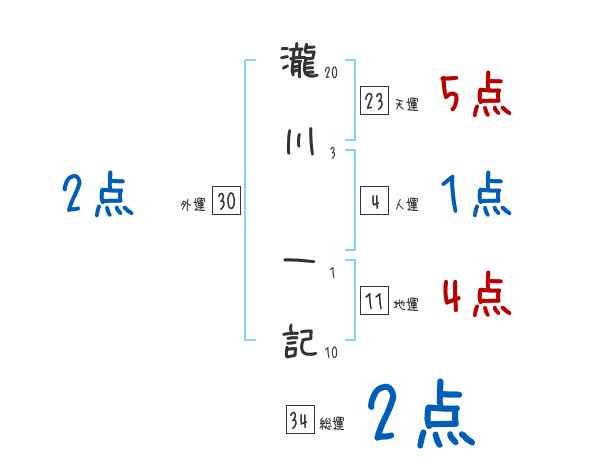 瀧川一記さんの画数の鑑定結果