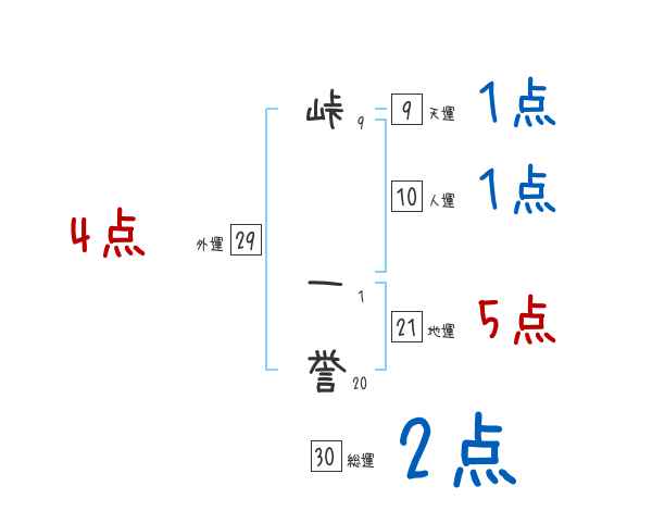 天運![]() | 峠一誉さんの天運は9画の1つ星!消極的で才能を発揮することが苦手なことも。周りの意見に耳を傾けましょう。 家系が持つ宿命的な運勢を表します。祖先から受け継いだ苗字ですので自分の力が及びません。家柄を象徴します。 |