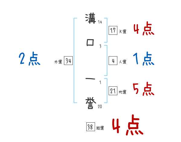 天運![]() | 溝口一誉さんの天運は17画の4つ星!積極的な行動力。地位を気づき財産を手に入れる。純粋な心と直感力。 家系が持つ宿命的な運勢を表します。祖先から受け継いだ苗字ですので自分の力が及びません。家柄を象徴します。 |