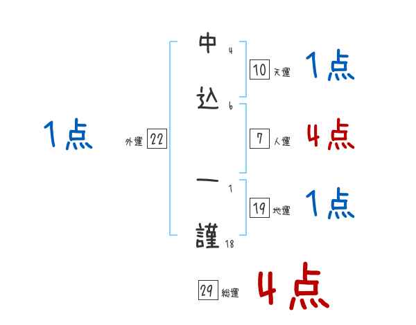 天運![]() | 中込一謹さんの天運は10画の1つ星!不安を感じやすい傾向。ストレスを抱えないように注意しましょう。 家系が持つ宿命的な運勢を表します。祖先から受け継いだ苗字ですので自分の力が及びません。家柄を象徴します。 |