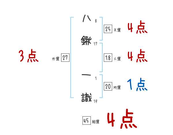 外運![]() | 八鍬一識さんの外運は27画の3つ星!頭脳明晰だが強情で摩擦が多い傾向。孤立に注意。 生活面を象徴する運勢です。外部から受ける影響力を表し、結婚運、家庭運や職場、環境への順応性を表します。 |