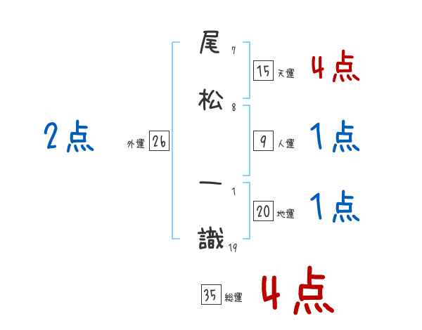 尾松一識さんの画数の鑑定結果