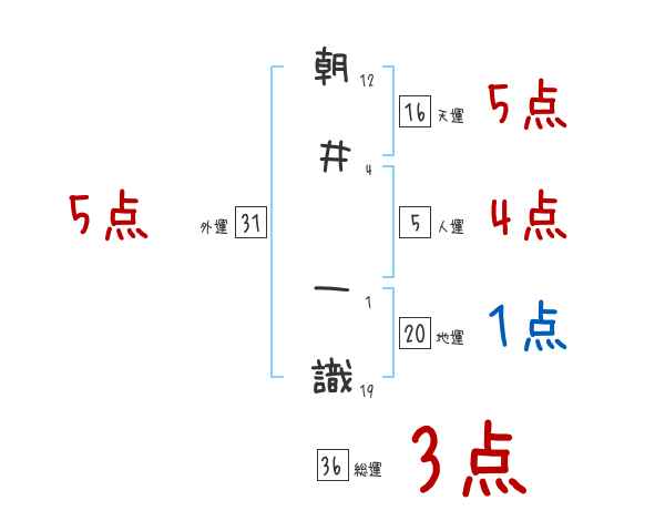 朝井一識さんの画数の鑑定結果