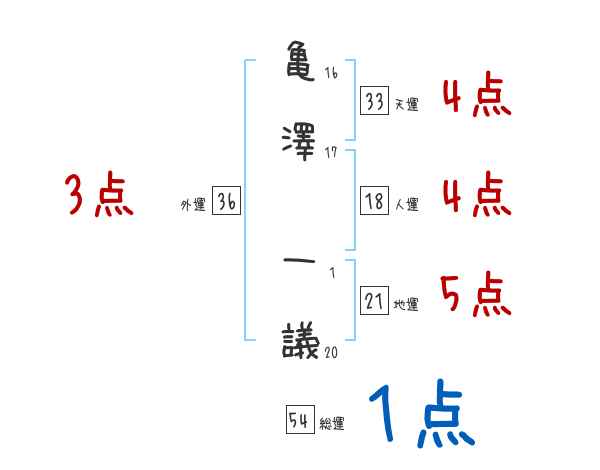 亀澤一議さんの画数の鑑定結果