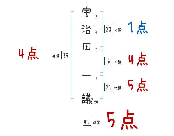 宇治田一議さんの画数の鑑定結果