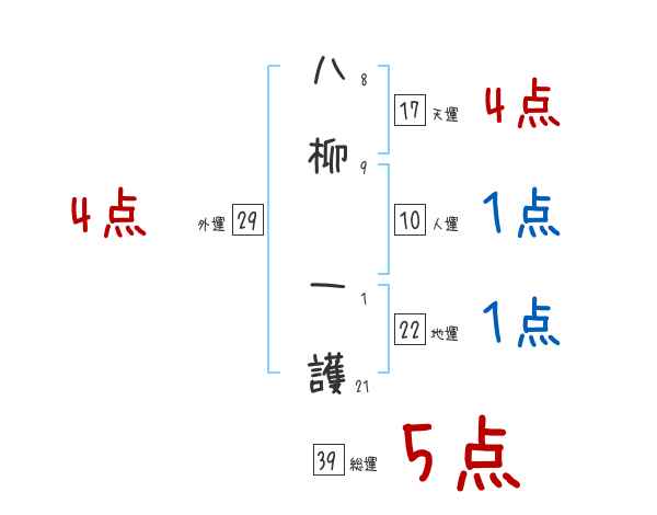 総運![]() | 八柳一護さんの総運は39画の5つ星!社交性に優れ人望が厚い。人の上に立ち成功する。 あなたの人生を表す1番重要な運勢です。生涯を通じて影響する総合運となり、主に50歳以降の晩年期に影響を及ぼします。 |