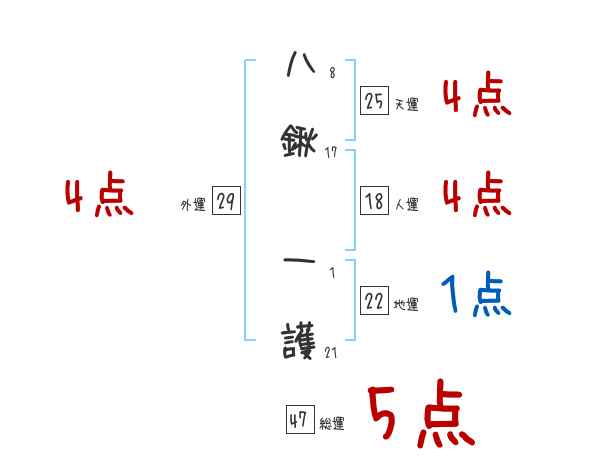 天運![]() | 八鍬一護さんの天運は25画の4つ星!個性があり才能があふれる。強運の持ち主で発展する。 家系が持つ宿命的な運勢を表します。祖先から受け継いだ苗字ですので自分の力が及びません。家柄を象徴します。 |