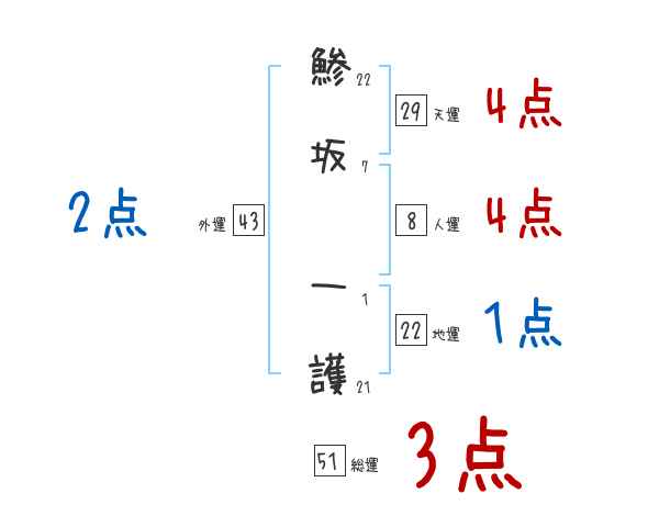 天運![]() | 鯵坂一護さんの天運は29画の4つ星!完全主義で才能がある。厳格な心の持ち主。 家系が持つ宿命的な運勢を表します。祖先から受け継いだ苗字ですので自分の力が及びません。家柄を象徴します。 |