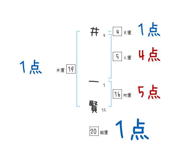 外運![]() | 井一賢さんの外運は19画の1つ星!優れた才能を持ちますが、協調性が足りないことも。周りの人と協力する事を意識しましょう。 生活面を象徴する運勢です。外部から受ける影響力を表し、結婚運、家庭運や職場、環境への順応性を表します。 |
