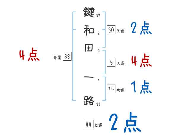 鍵和田一路さんの画数の鑑定結果