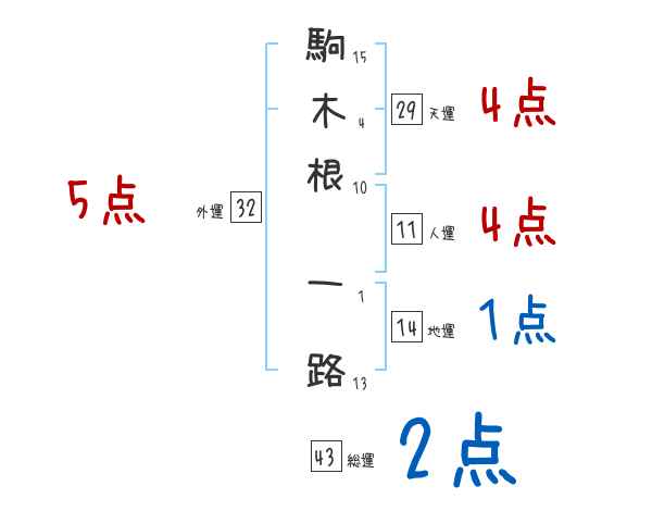 駒木根一路さんの画数の鑑定結果