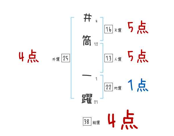 人運![]() | 井筒一躍さんの人運は13画の5つ星!才能に恵まれ人気がある。名声を手に入れる。円満な人生。 性格や才能などを表す2番目に重要な運勢です。人間関係や協調性、社会的な成功に影響します。主に20歳から50歳ぐらいまでの中年期の運勢を表します。 |