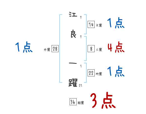 江良一躍さんの画数の鑑定結果
