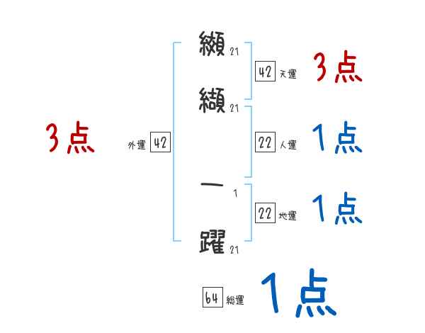 外運![]() | 纐纈一躍さんの外運は42画の3つ星!病気に注意。多芸であるが消極的でおとなしい。 生活面を象徴する運勢です。外部から受ける影響力を表し、結婚運、家庭運や職場、環境への順応性を表します。 |
