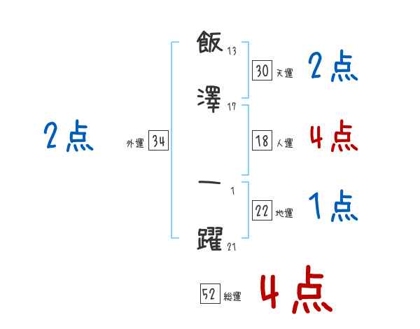 飯澤一躍さんの画数の鑑定結果