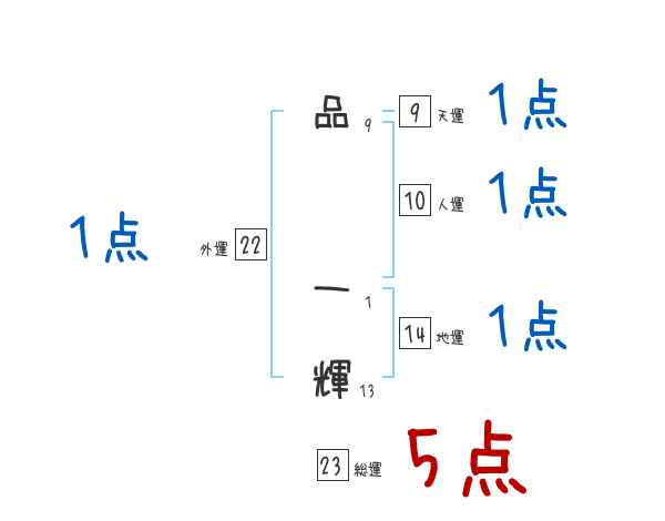 品一輝さんの画数の鑑定結果