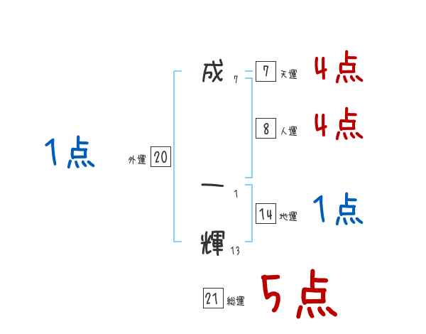 成一輝さんの画数の鑑定結果