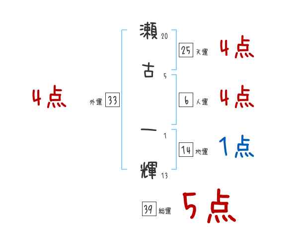 瀬古一輝さんの画数の鑑定結果