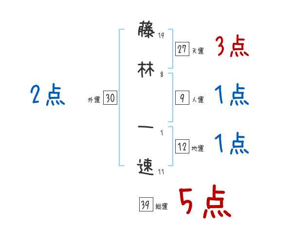 人運![]() | 藤林一速さんの人運は9画の1つ星!消極的で才能を発揮することが苦手なことも。周りの意見に耳を傾けましょう。 性格や才能などを表す2番目に重要な運勢です。人間関係や協調性、社会的な成功に影響します。主に20歳から50歳ぐらいまでの中年期の運勢を表します。 |